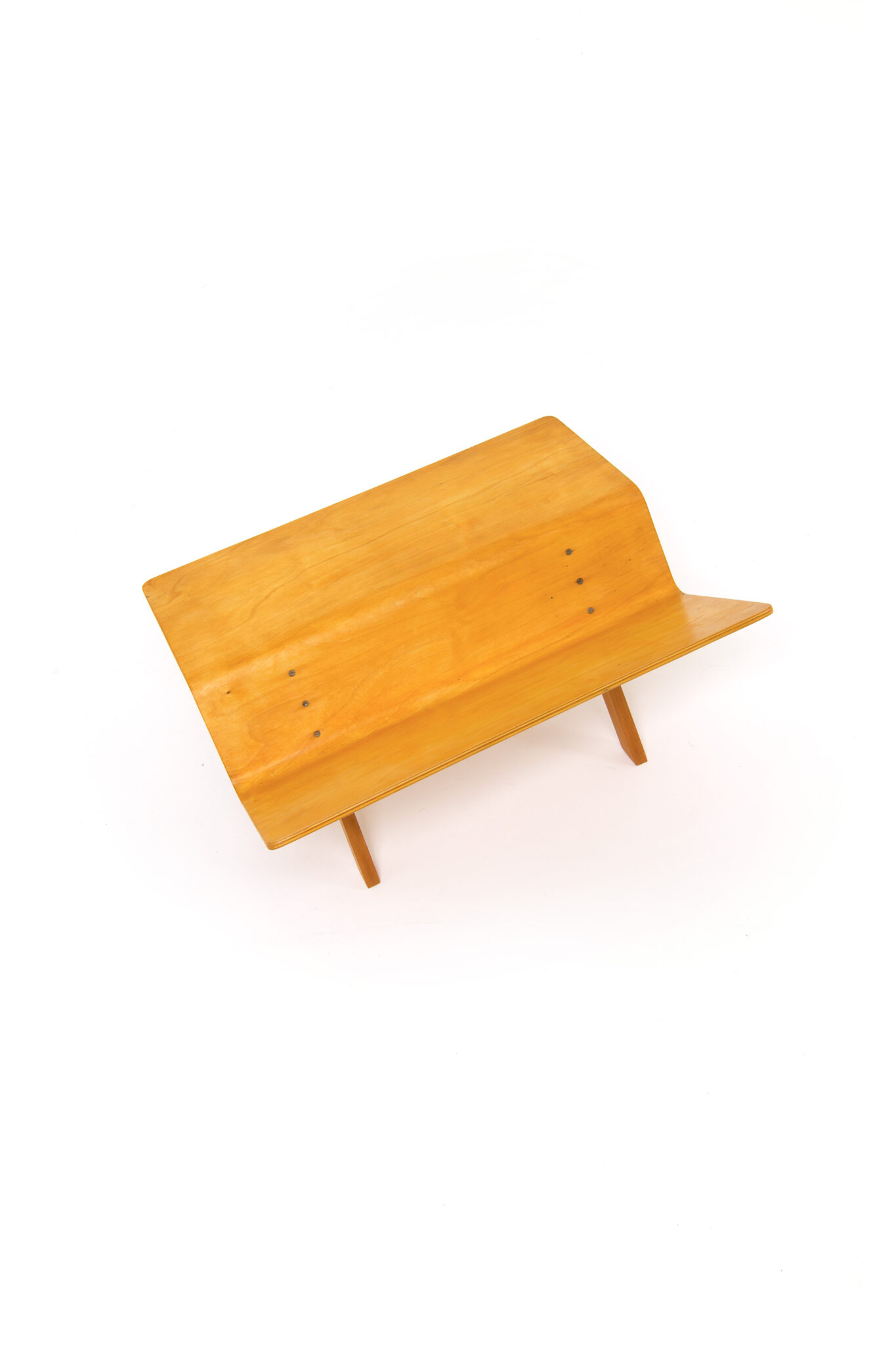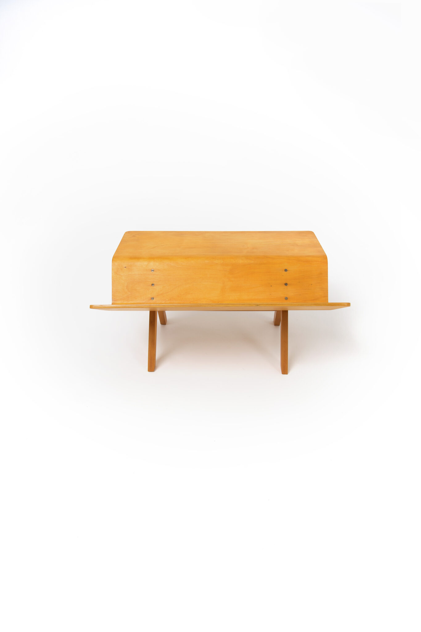 Il s'agit de l'un des premiers modèles en contreplaqué fabriqués aux Pays-Bas. Cette table d'appoint a probablement été conçue pour le Groep & (1946-1950), un collectif de designers fondé par Hein Stolle avec Wim den Boon et Pierre Kleykamp. Ce groupe s'est engagé à transposer les idéaux du design d'avant-guerre dans l'après-guerre aux Pays-Bas.