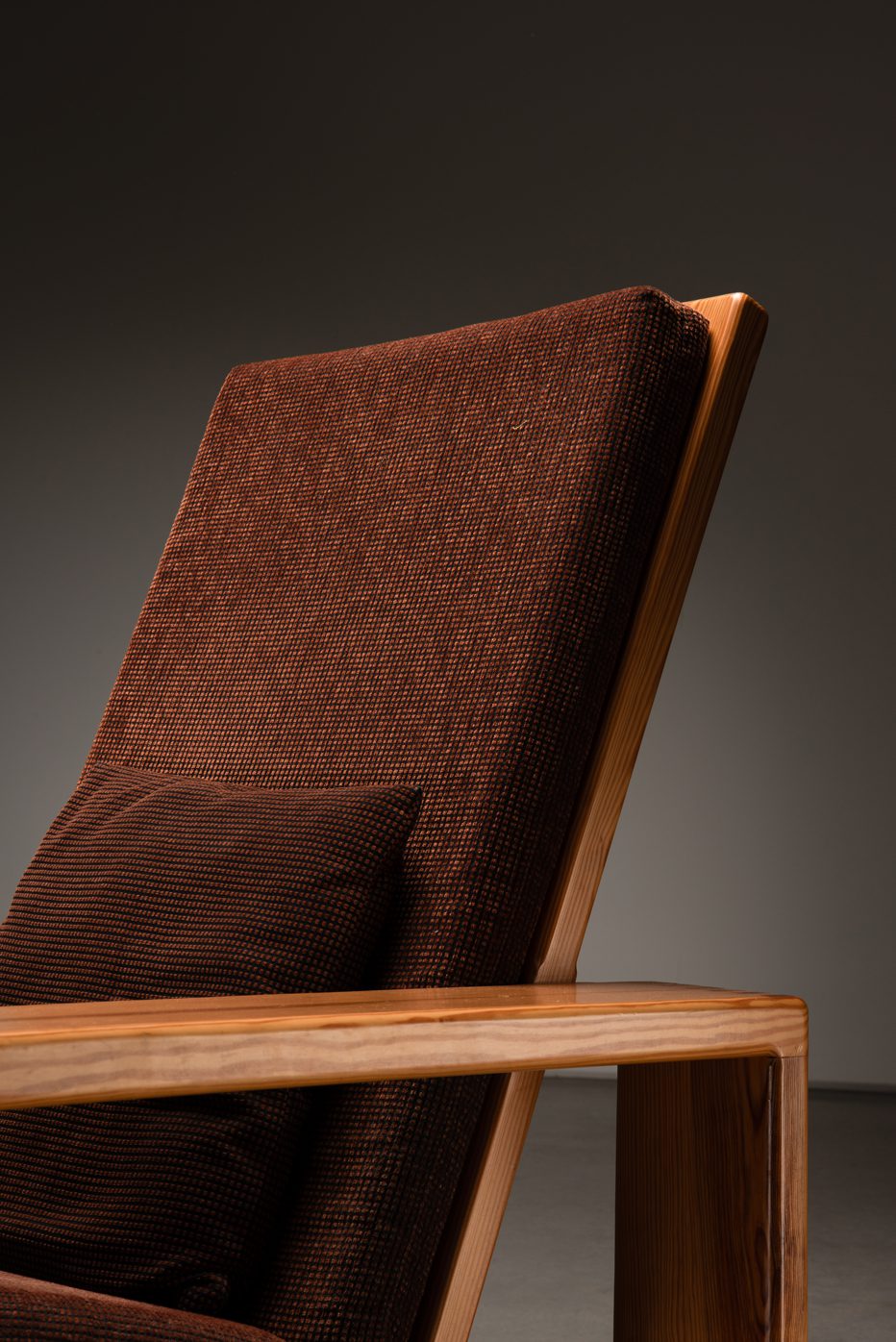 Van Apeldoorn, le fondateur de Houtwerk Hattem, était connu pour son expertise dans le travail du bois et ses créations particulières qui incorporaient souvent des matériaux naturels. Cette chaise longue témoigne du savoir-faire et du souci du détail qui ont fait la renommée des créations de Van Apeldoorn. L'utilisation du bois de pin est bien connue dans les créations d'Ate. L'utilisation du bois de pin ne donne pas seulement à la chaise une esthétique chaleureuse et accueillante, mais met également en valeur la beauté naturelle du matériau. L'ajout de coussins dans le tissu brun original améliore le confort de la chaise, ce qui en fait non seulement une pièce visuellement attrayante, mais aussi un siège pratique et confortable.