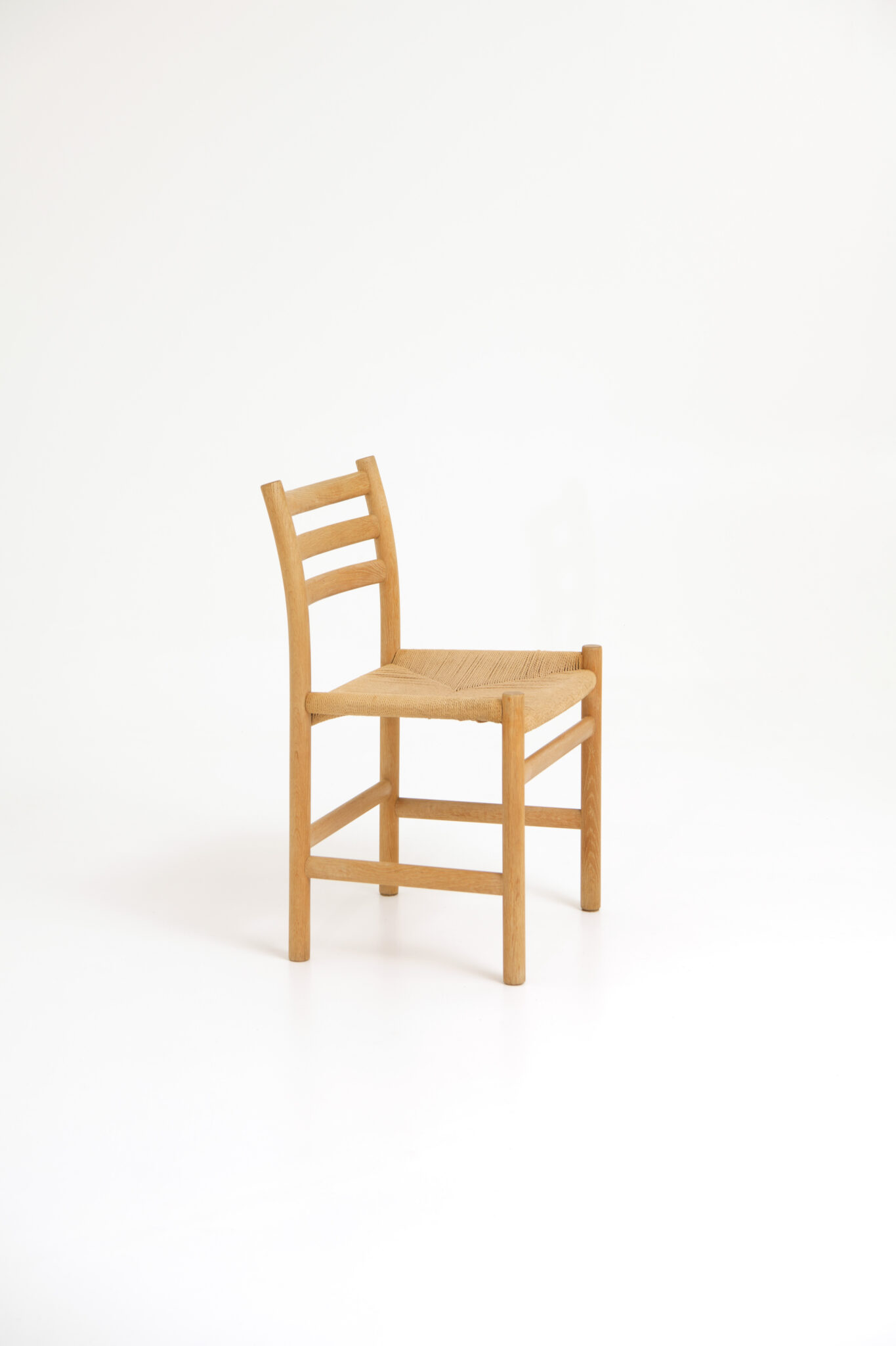 Il s'agit d'un ensemble de chaises de salle à manger à dossier en échelle, modèle 350, conçues par Poul Volther pour Soro Stolefabrik, au Danemark, dans les années 1960. Les chaises sont en chêne traité au savon et sont en excellent état.
