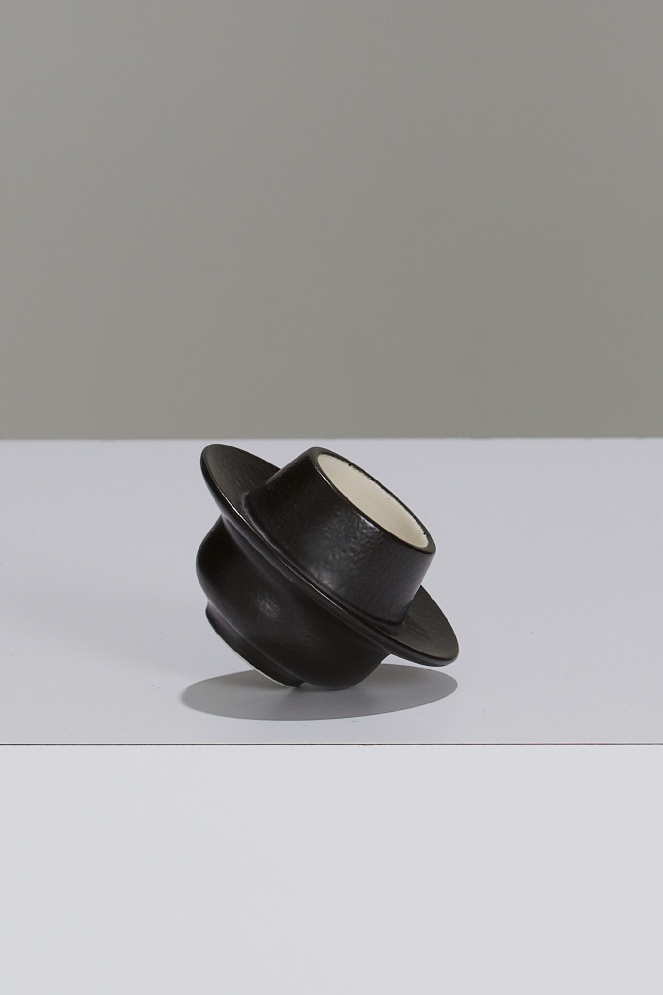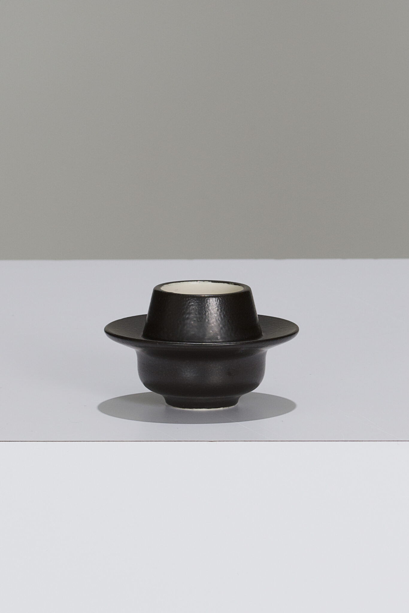Les tasses sont disponibles en différentes tailles, couleurs et finitions. Il s'agit ici de la taille espresso, noire et avec une finition mate. Les tasses ont été fabriquées par l'Anverre Royal Boch.