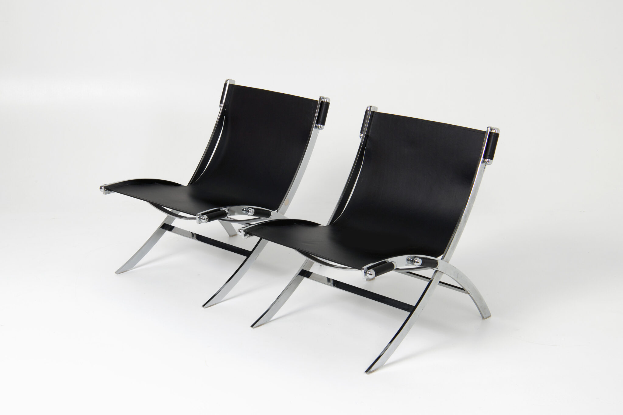 Een paar 'Scissor' stoelen, geproduceerd door Flexform, Italiƫ en ontworpen door Antonio Citterio en Paul Tuttle in de jaren 1980.