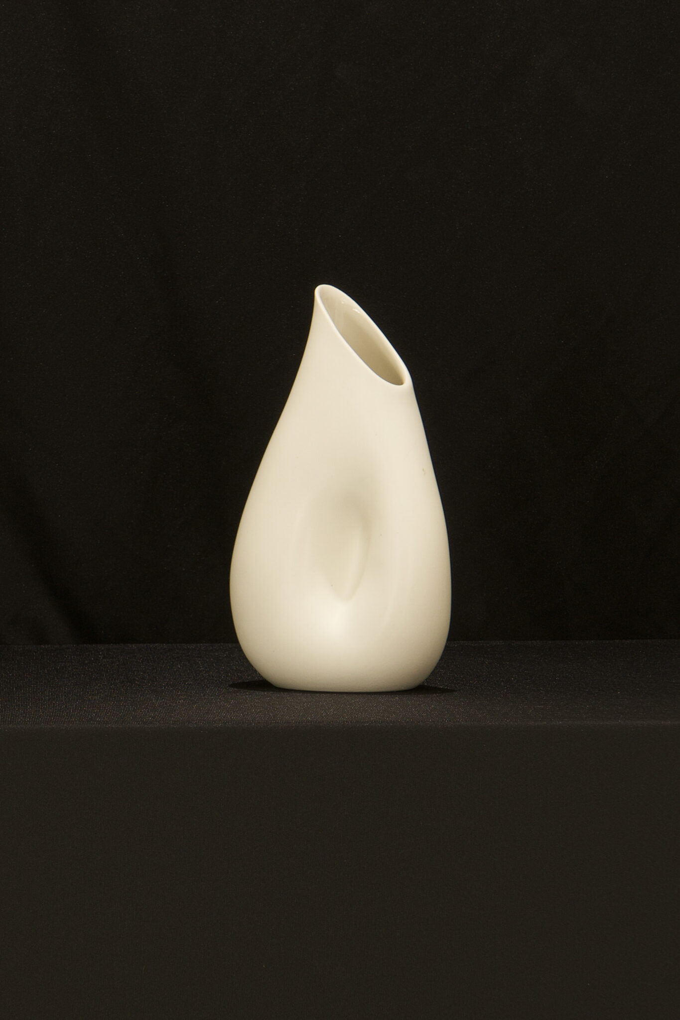 Een karaf van keramiek in wit, gemaakt door kunstenaar Sem Schanzer voor het kunstenaarscollectief l'Anverre. De karaf is geproduceerd door L'Anverre x Royal Boch.