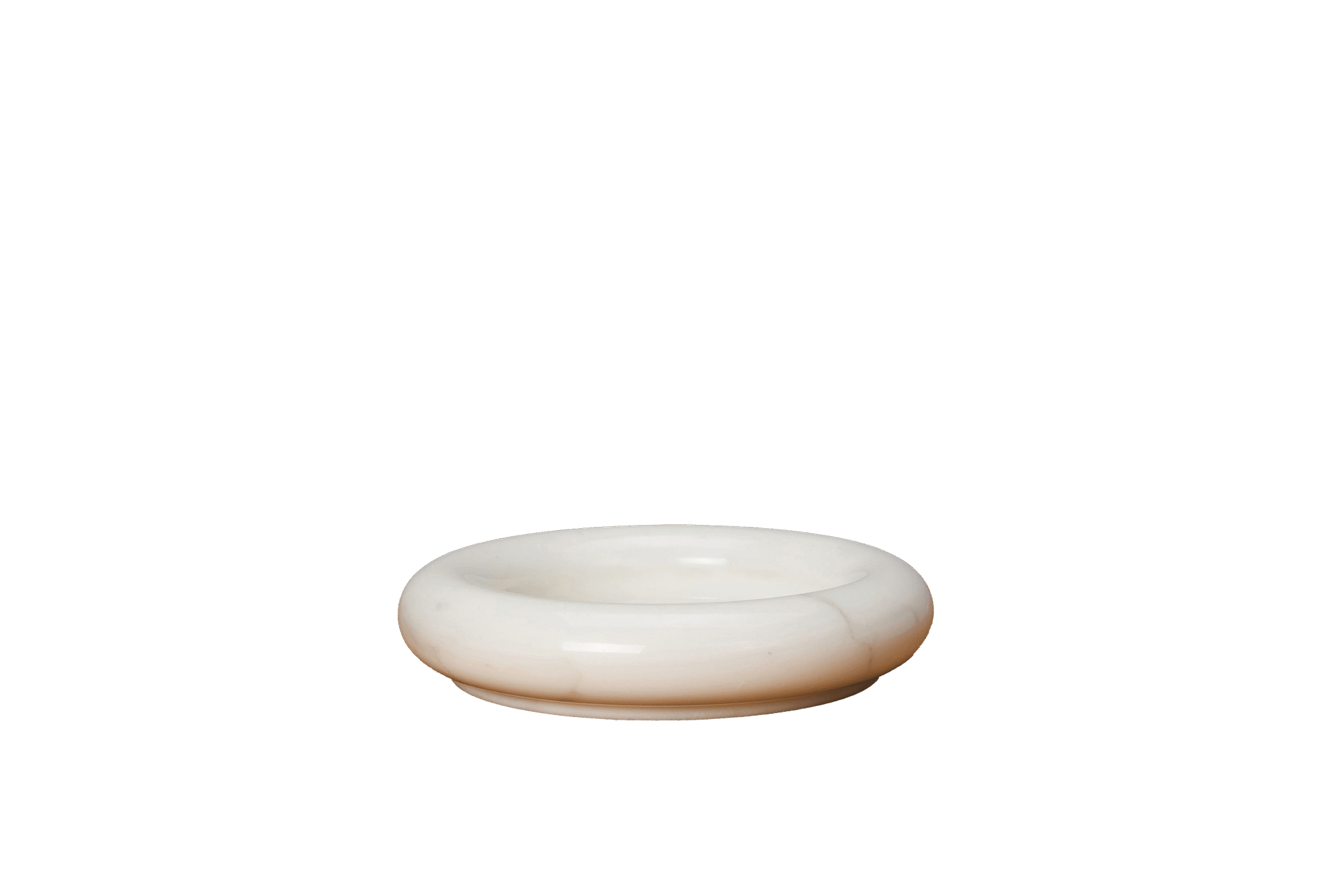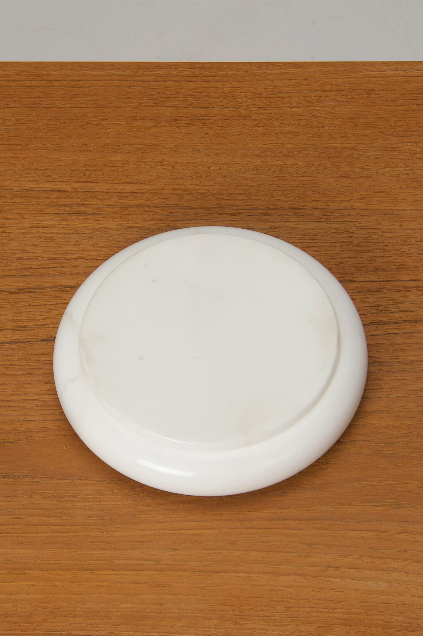 Een muntbakje in wit marmer, ontworpen door Angelo Mangiarotti.