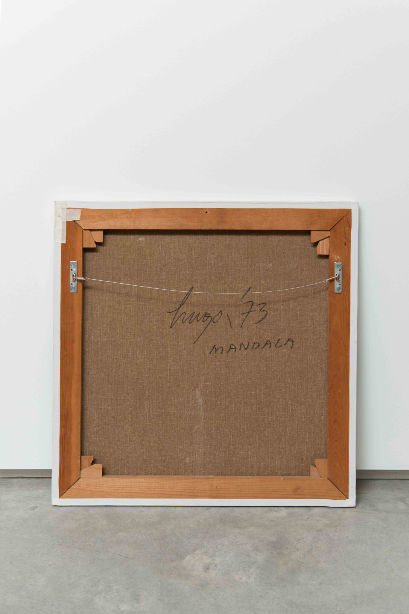 Olieverfschilderij op doek getiteld "Mandala", door de in Gent geboren modernistische schilder Hugo de Clercq. Uit een periode van schilderijen van de Clercq die gradiƫnt en vormen gebruikten om te spelen met driedimensionaliteit. Gesigneerd en gedateerd op de achterkant, "hugo," (met de typische komma achter zijn naam als eeuwige 'wordt vervolgd') '73.