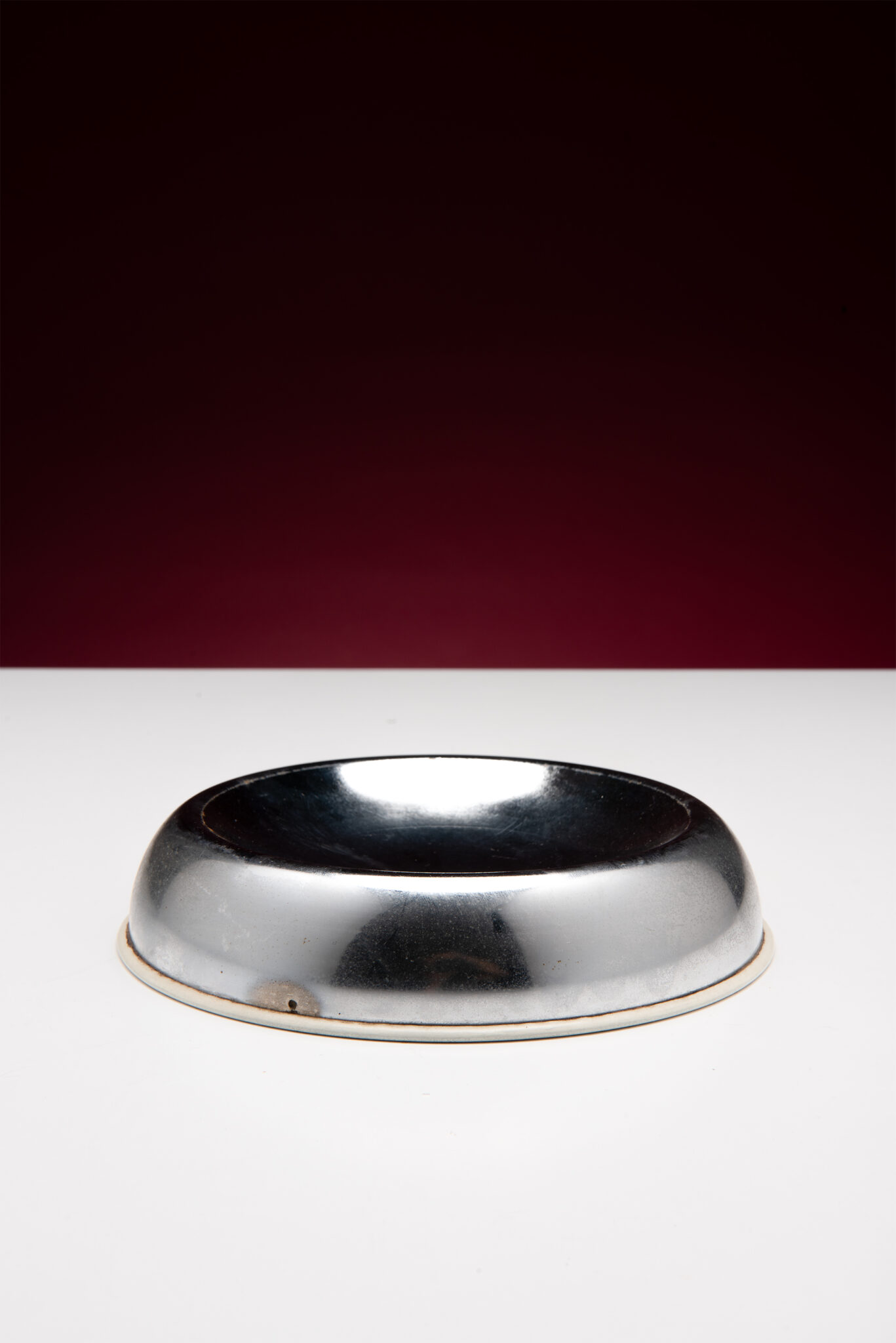 Deze prachtige Space Age tafellamp, ontworpen in de jaren 1960 in Italiƫ, bestaat uit een heldere Murano glazen bol met luchtbellen en een wit 'membrame' dat een prachtige verdeling creƫert in combinatie met de lichtbron. Het glas met de luchtbellen wordt ook wel Pelegoso glas genoemd, deze luchtbellen worden gemaakt door in het gesmolten glas een bestanddeel te injecteren dat reageert en gasbellen afgeeft. Deze techniek werd uitgevonden door Napoleone Martinuzzi in de Vennini glasfabriek in de jaren 1920. De roestvrijstalen voet waarop de grote glazen bol rust, maakt het mogelijk om de lamp in verschillende posities te plaatsen. De lamp is nog helemaal origineel en verkeert in zeer goede staat.