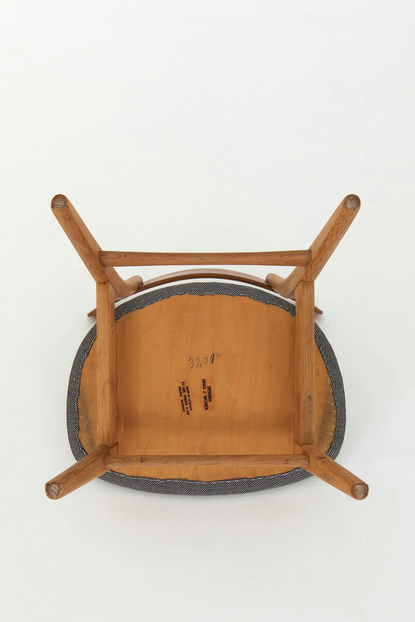 Dit is weer een geweldig voorbeeld van het werk van Wegner, dat eens te meer bewijst dat hij een van de meest iconische architecten is in de Deense designgeschiedenis. Deze set stoelen is ontworpen met een scherp gevoel voor proporties en elegante vormen, vervaardigd door de beste meubelmakers van Denemarken. Technische details worden niet over het hoofd gezien, maar juist op een bescheiden manier getoond. Alles draait om kwaliteit, ergonomie en vakmanschap, de basis van het Deense modernisme.