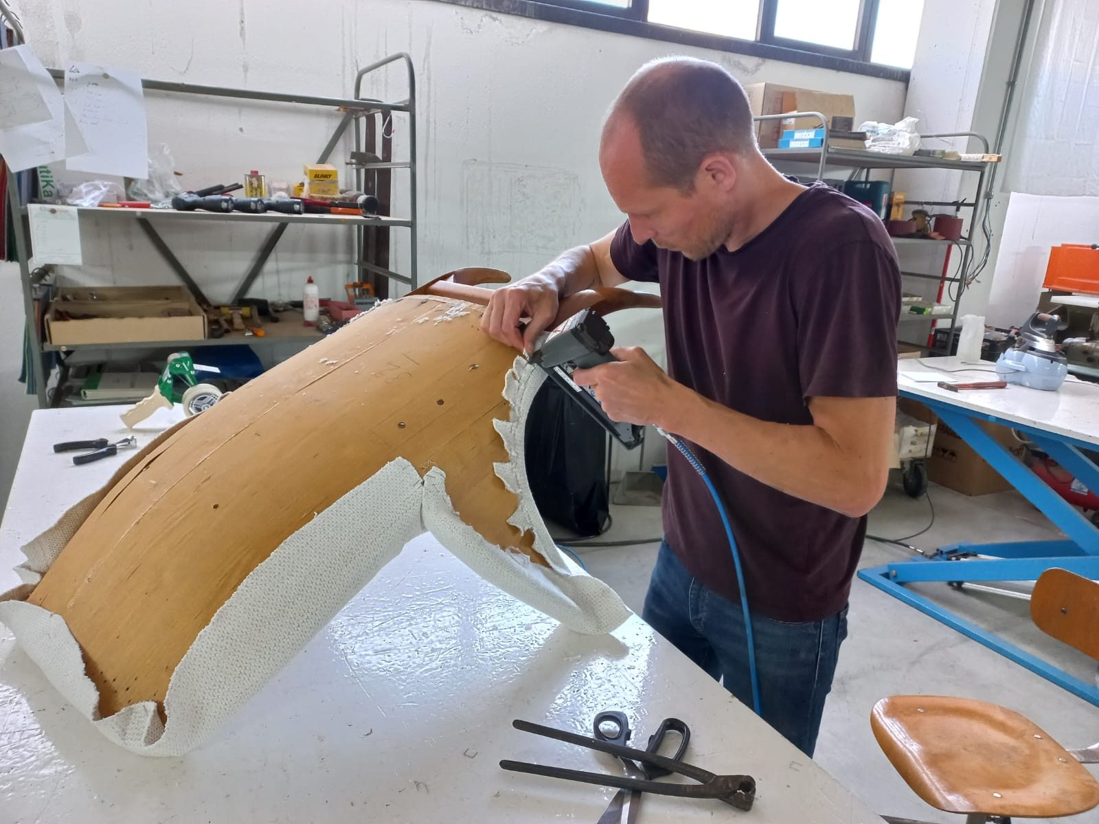 Elk stuk wordt zorgvuldig onderzocht door ons team en gerestaureerd volgens zijn behoeften. Dit gebeurt in onze werkplaats, waar we hout restaureren, lampen opnieuw bedraden en nog veel meer.