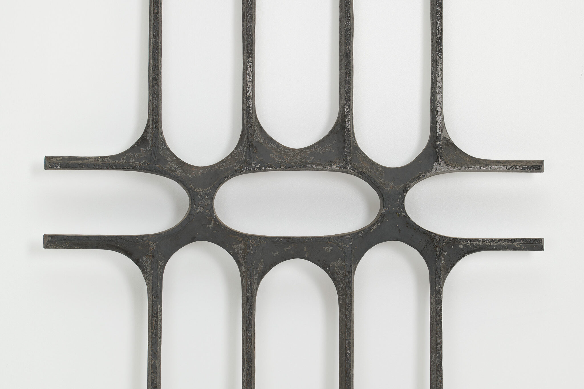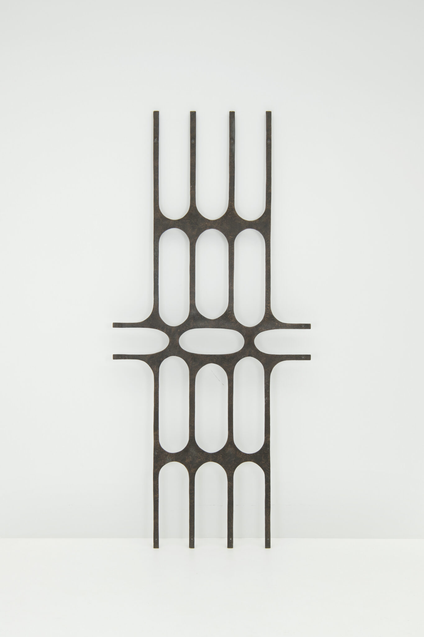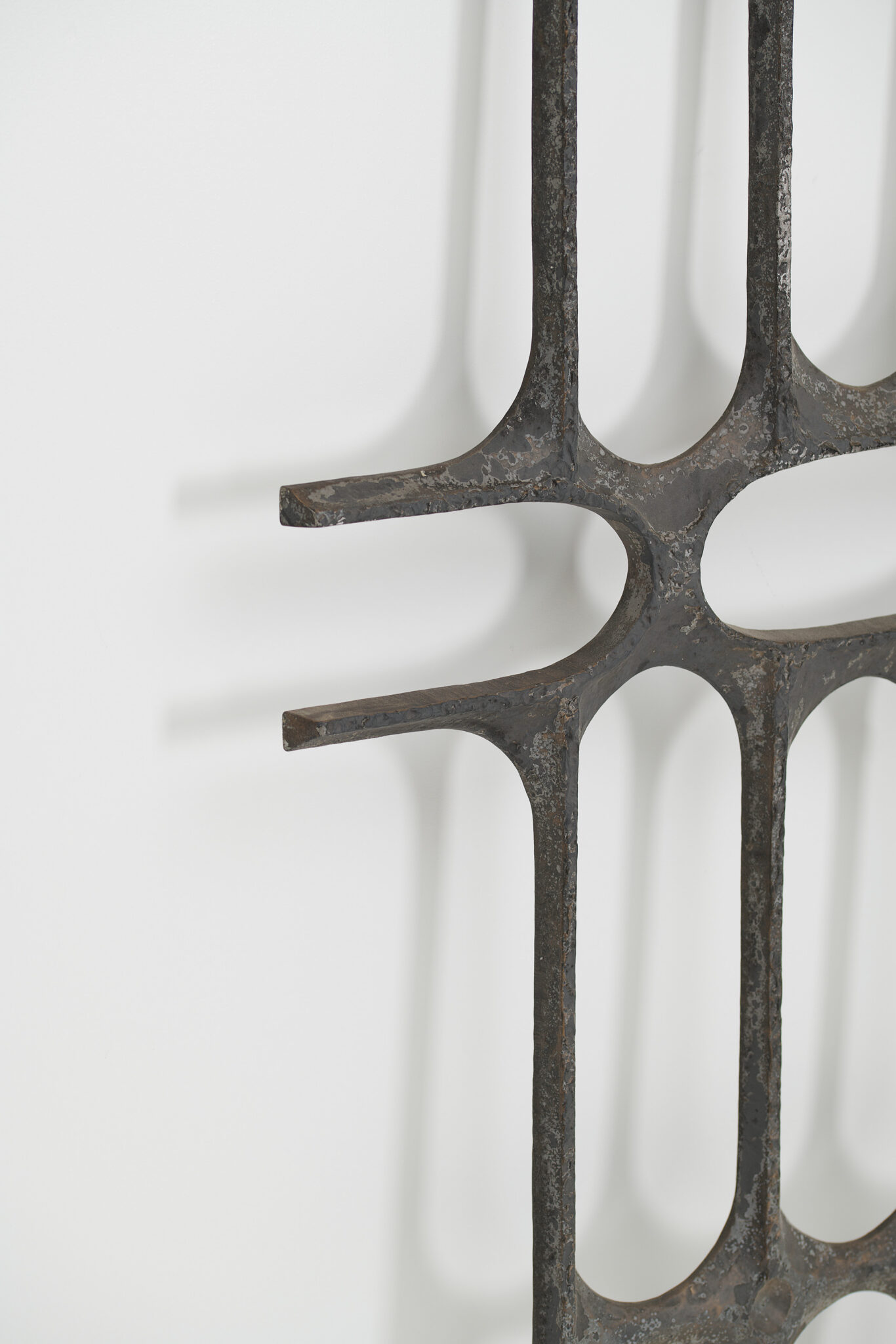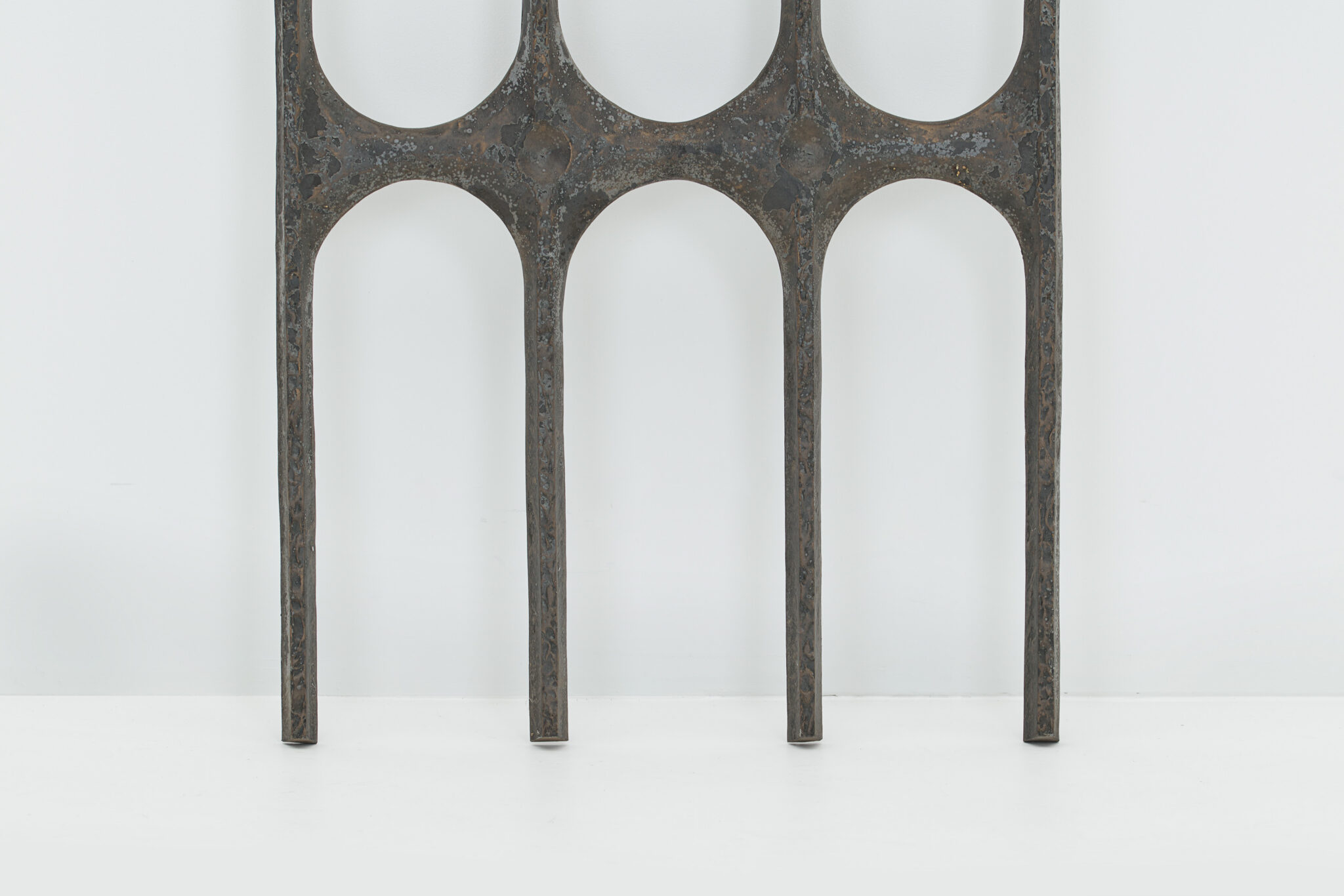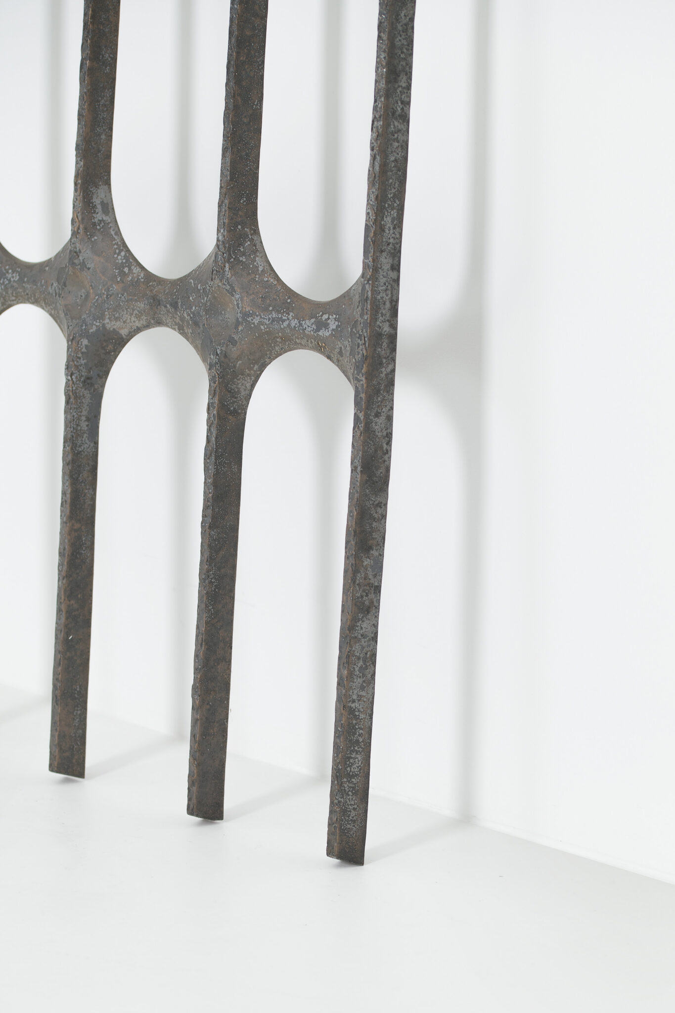 A brutalist metal art decoration, presumably made in the 1960s.