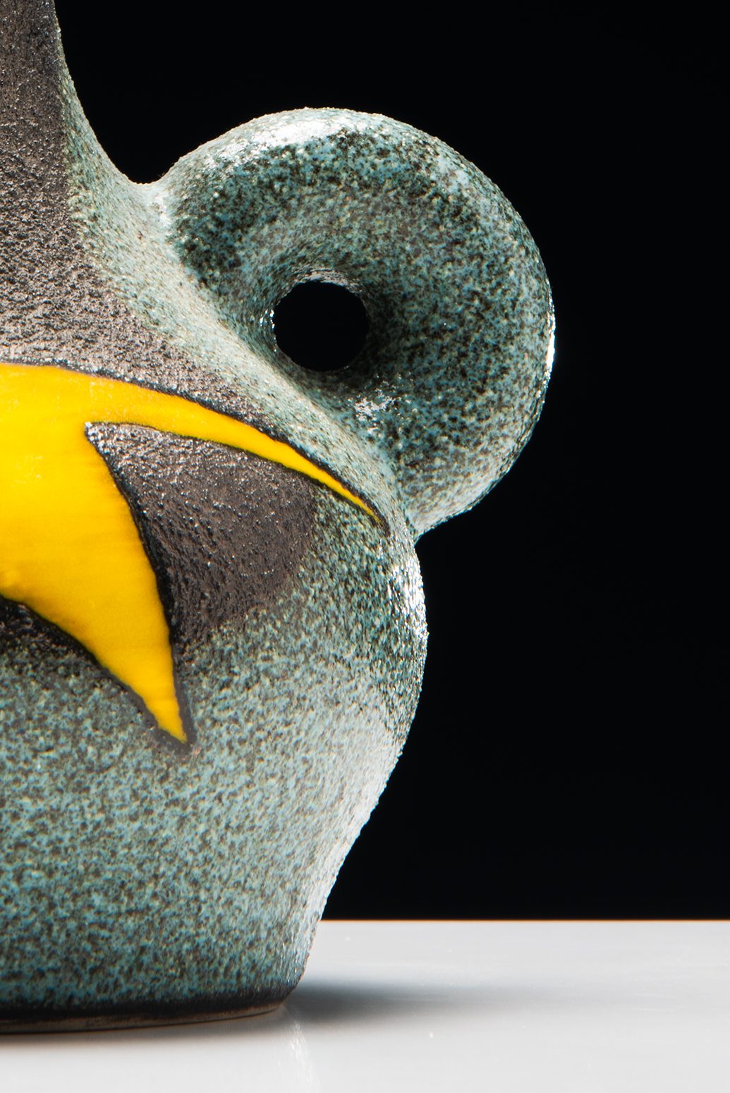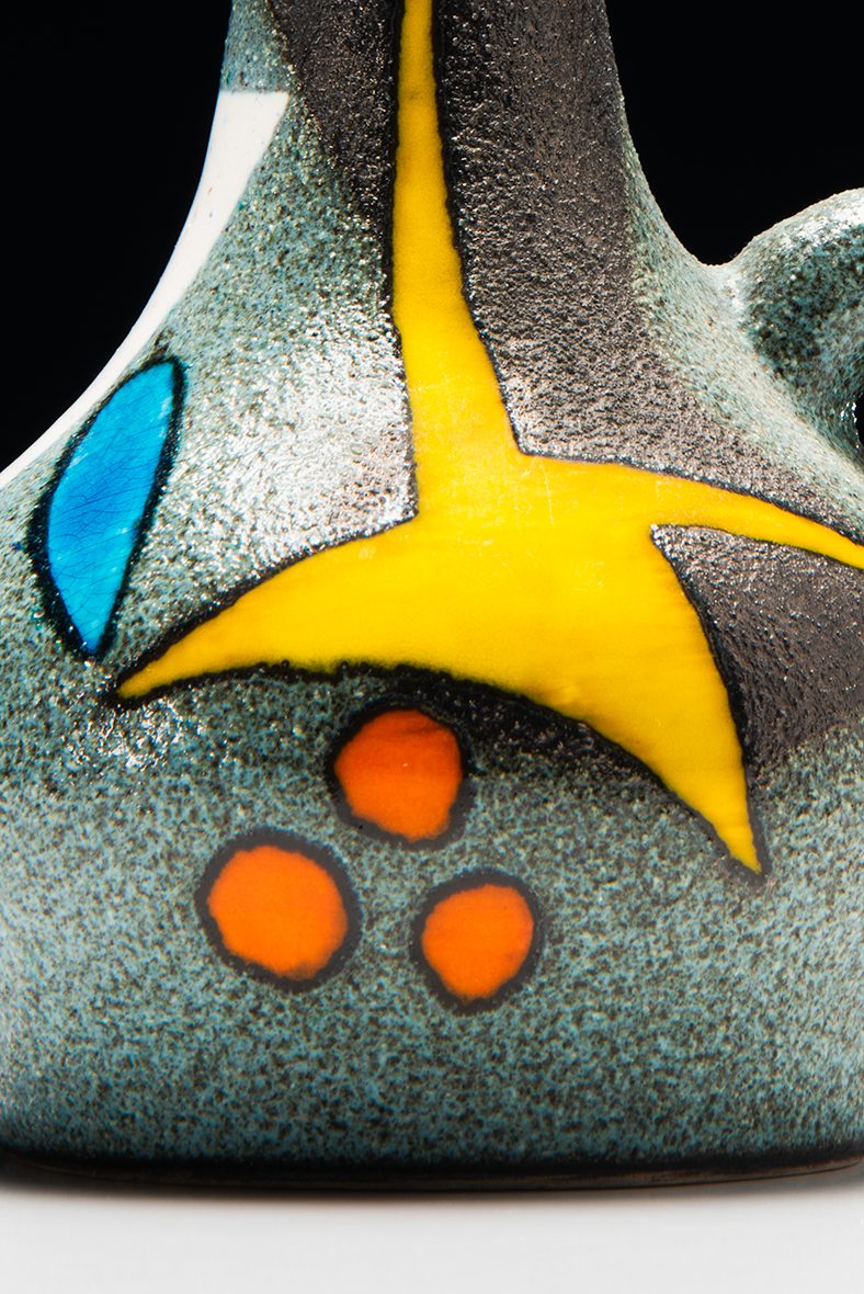 Ceramic vase by Gilbert Valentin, Vallauris made in Les Archanges, France, in the 1950s. Les Archanges was the name of the workshop created by Gilbert Valentin and his wife Lilette in Vallauris, South of France, in 1950. It was Jean Cocteau, a close friend of the couple who gave the name Atelier Les Archanges.