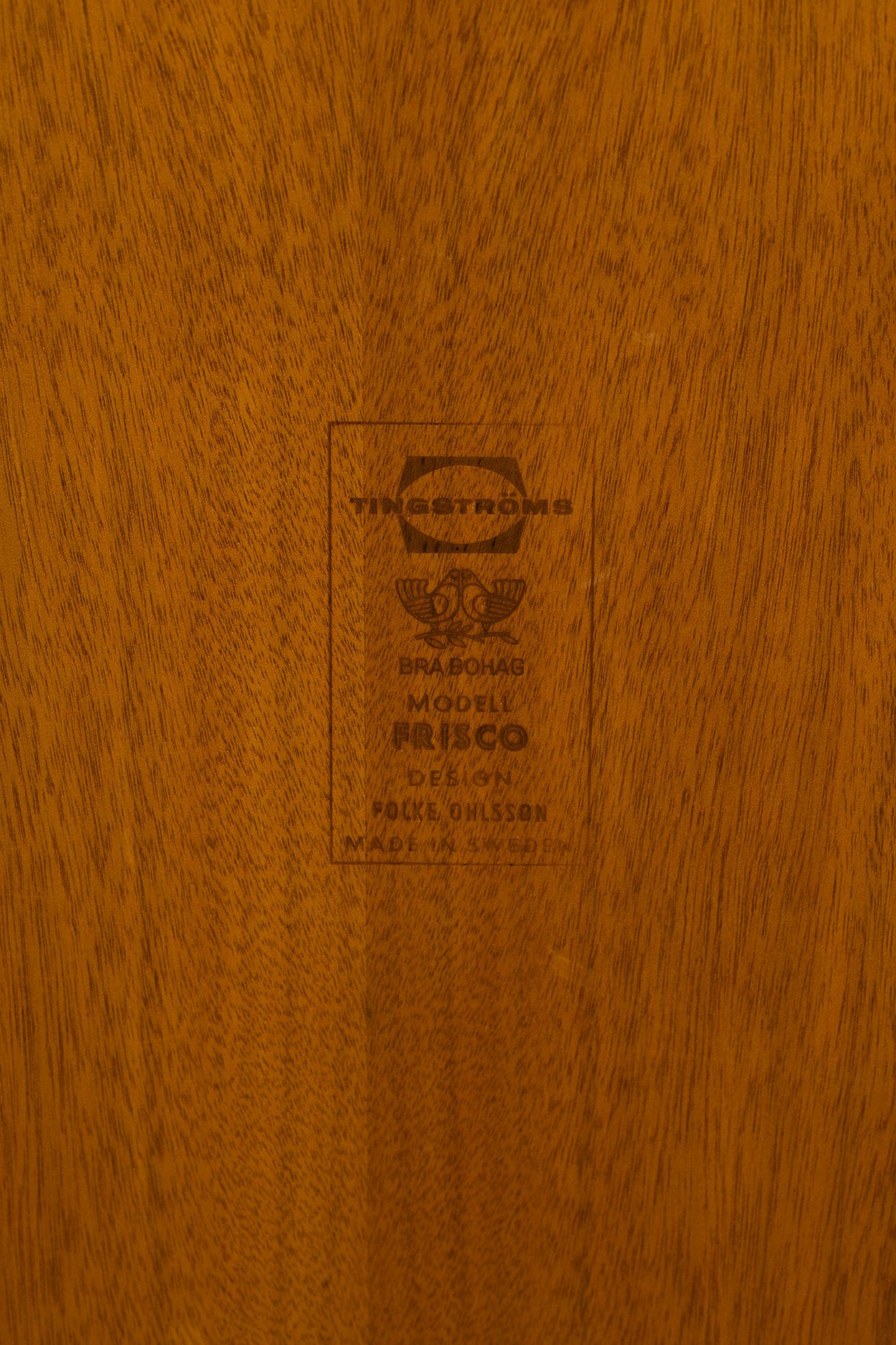 It was designed for the Swedish brand Bra Bohag, who specialized in mid-century interior items. Bra Bohag literally means ‘good furniture’, as it was their ideal to produce better-designed everyday furniture for Swedish homes. The ‘Frisco’ remains an icon of Scandinavian modern design, crafted from solid wood with a curved lip detail on the top part.