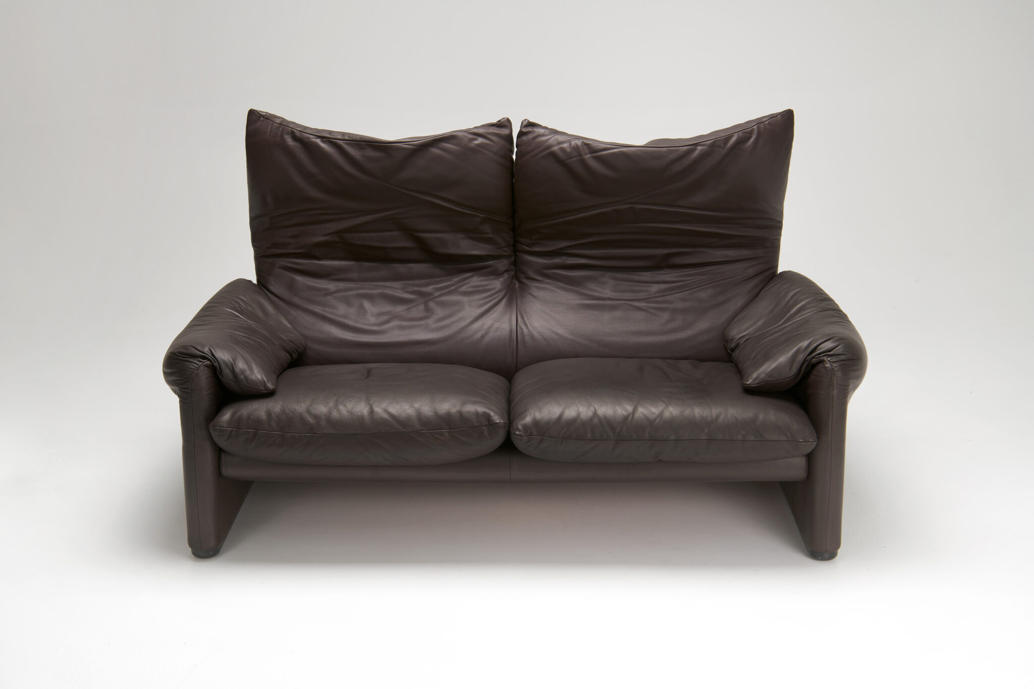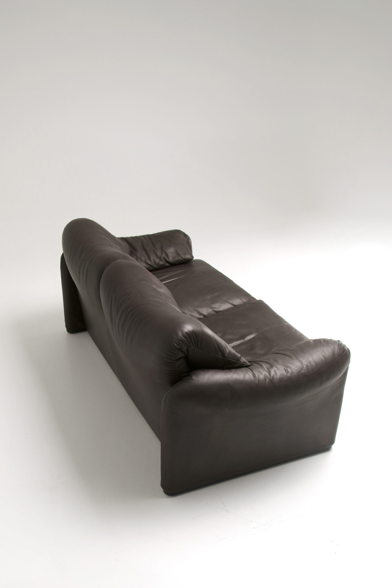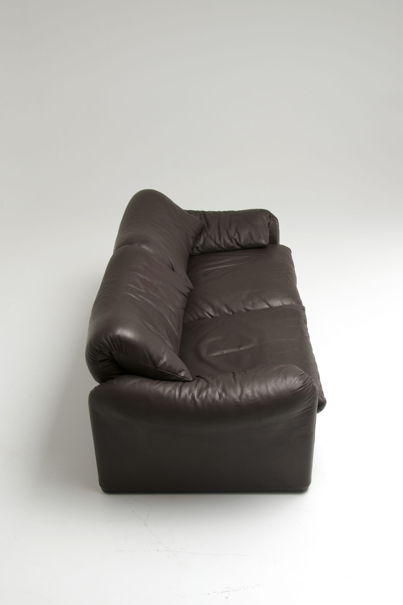A 'Maralunga' 2-seater in brown leather upholstery, designed by Vico Magistretti for Cassina in the 1970's.