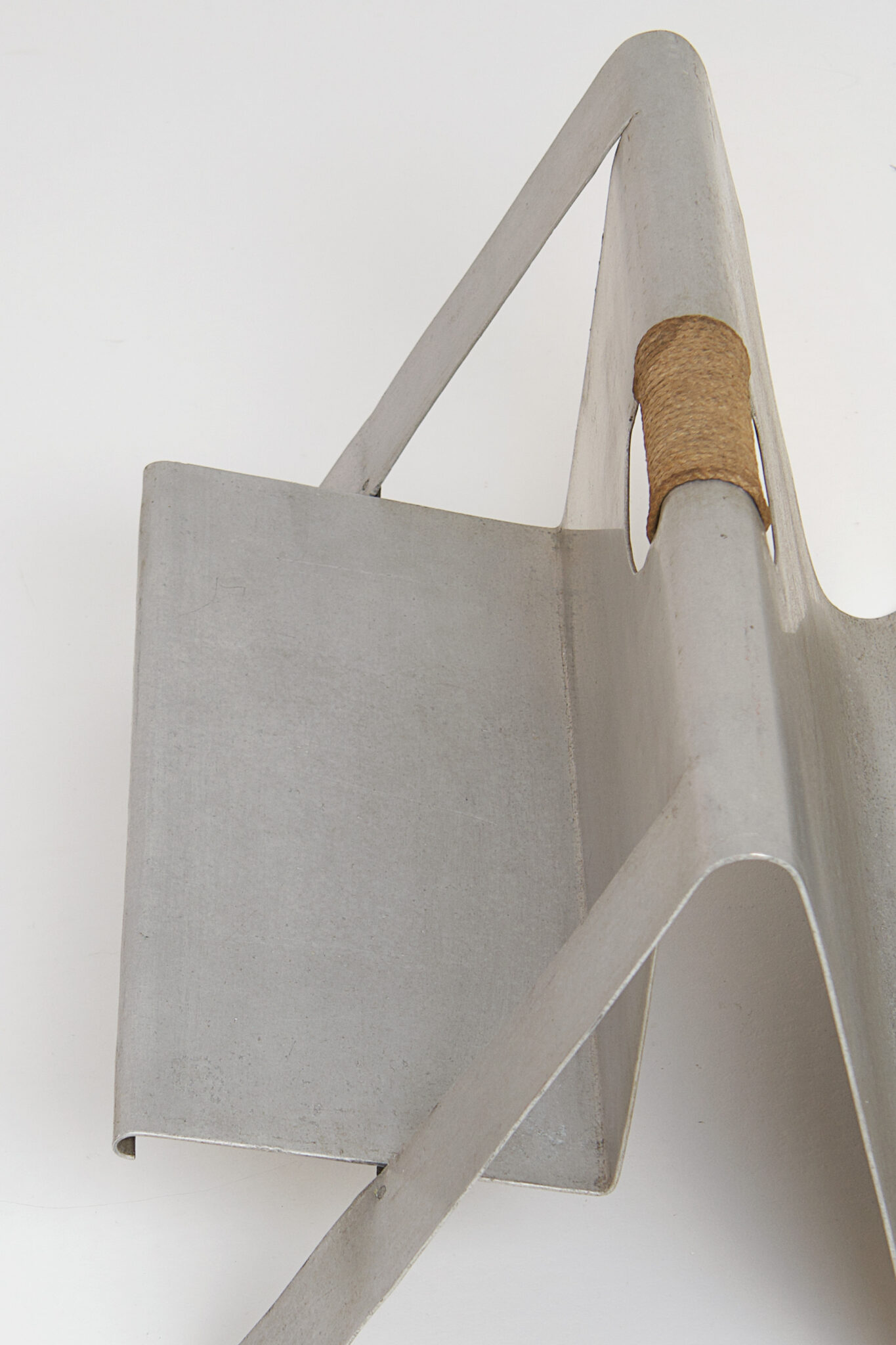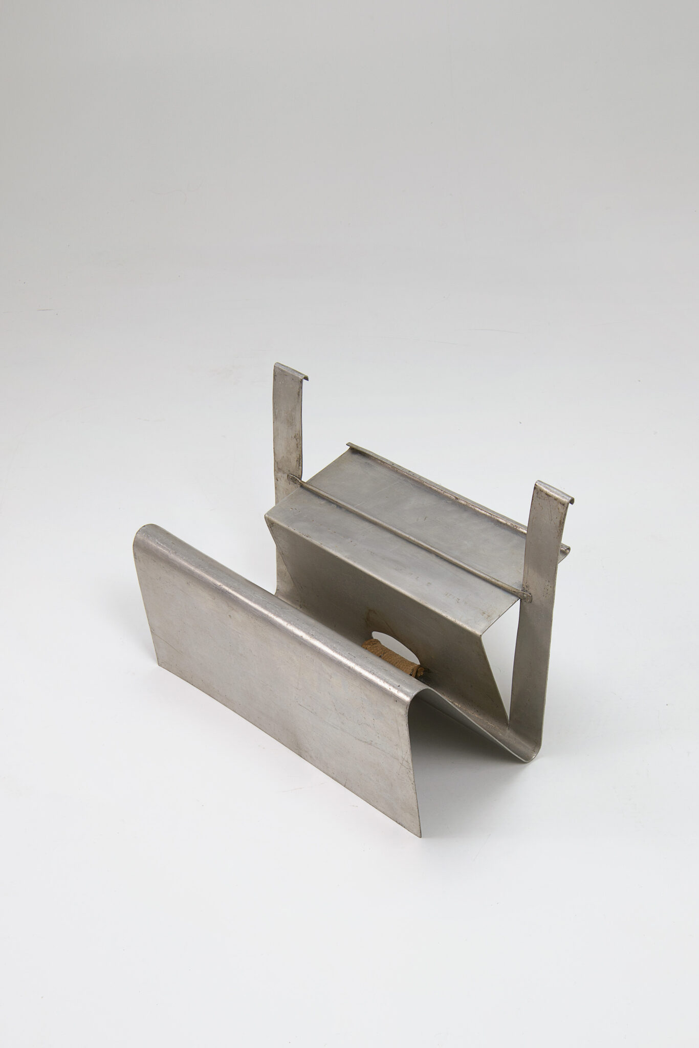 It is made from a single bent aluminum sheet. Parry kept this magazine holder in his personal collection, hence it never went further on to production. This makes it a one-of-a-kind model. Attached is a signed document proving its authenticity.